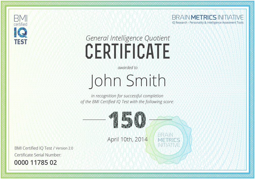 Upon completing the test, you will receive a personalized, exclusive certificate bearing the name you provide. This distinct credential can be shared with educational institutions or recruitment agencies, and used to enrich your resume or LinkedIn profile. Your IQ score is generated using measurement methods grounded in historical academic research, and is then contextualized against the average for your age group. Our scoring mechanism is continually refined with ongoing data, ensuring an accurate and current reflection of human intelligence.